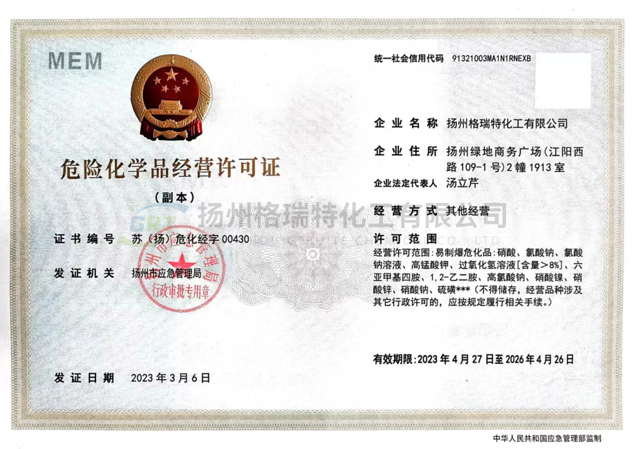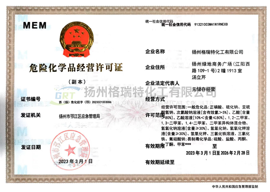 揚州格瑞特化工有限公司生產工廠坐落于江蘇省海安縣胡集工業(yè)園區和海安精細化工工業(yè)園??偣境闪⒂?999年,是集科、工、貿為一體的現代化生產型企業(yè)。專業(yè)致力于水處理劑、紡織印染助劑、化纖油劑等產品的科研、開發(fā)、生產和銷售??偣菊嫉孛娣e40000m,建有現代化標準廠房,擁有先進的生產設備。年產各類水處理劑系列產品12000噸,紡織印染助劑5000噸,產品12個系列40多個品種。總公司注重技術投入,設立產品研發(fā)中心和環(huán)保運營中心,聘請了多位專家為公司技術顧問,并和多個重點院校建立了長期技術合作開發(fā)關系,是南通大學、江南大學、南京工業(yè)大學產學研基地。